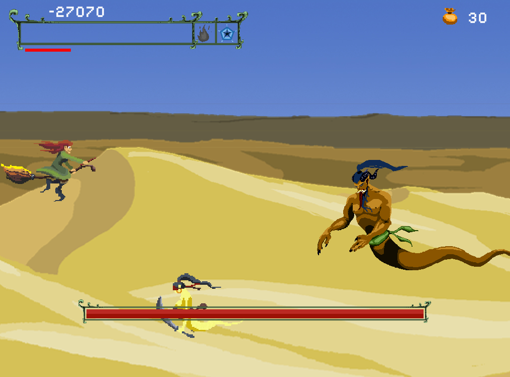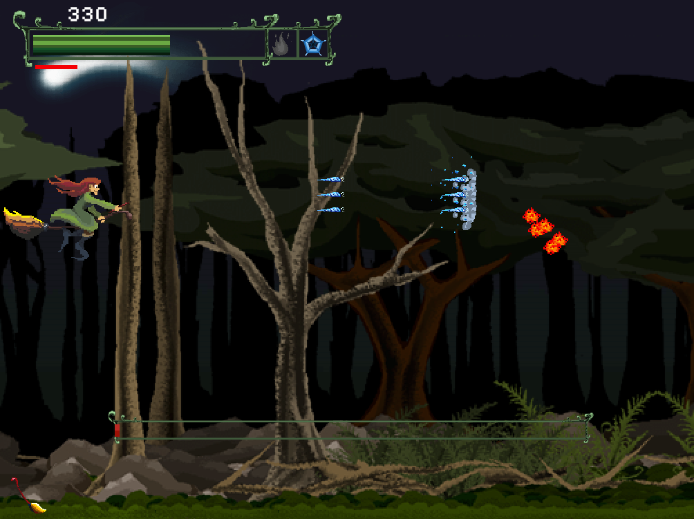 Im nächsten Schritt wird die Idee in Form eines Konzepts weiter ausgearbeitet. Als Spieltyp wurde ein 2D Sidescroller gewählt, bei dem der Spieler die Figur (Weihnachtshexe) mit den Pfeiltasten nach rechts, links, oben oder unten bewegen kann (vgl. Super Mario Bros.). Die Story inklusive der Haupt- und Nebenfiguren (z. B. Dämonen/Waldgeister) wurde im Detail ausgearbeitet und alle Spielfunktionen festgelegt (z. B. Levelstruktur, Feuer- und Eiszauber, Geschenkeabwurf, etc.).